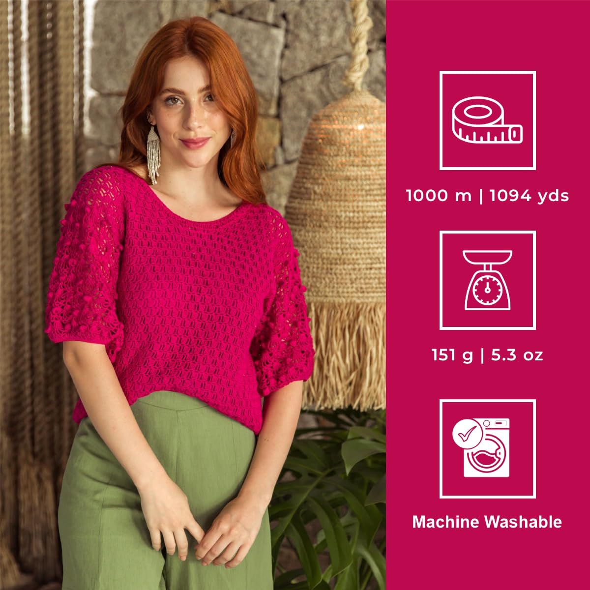 Circulo Clea Yarn – Crochet Thread Fine Size 10-8/2 Perfect for Weaving - 100% Mercerized Brazilian Cotton (Pack of 1 Ball) – 5.3 oz, 1094 yds - Color: 3635 - Passion
